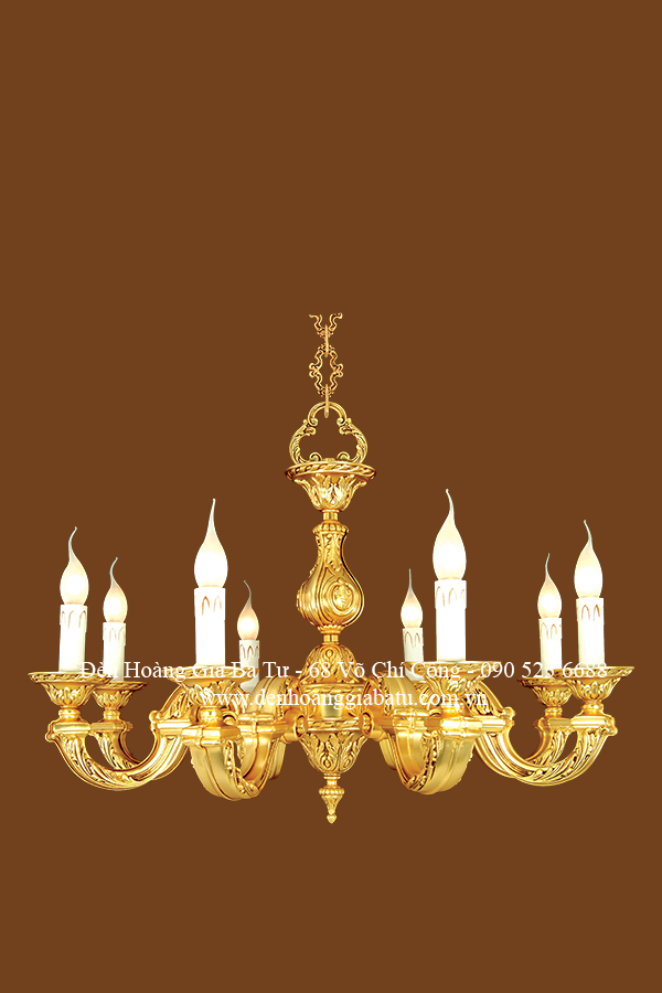Đèn chùm 3113/8 có 8 bóng đèn. Chất liệu: Đồng nguyên chất được mạ vàng 9999 Thụy Sĩ