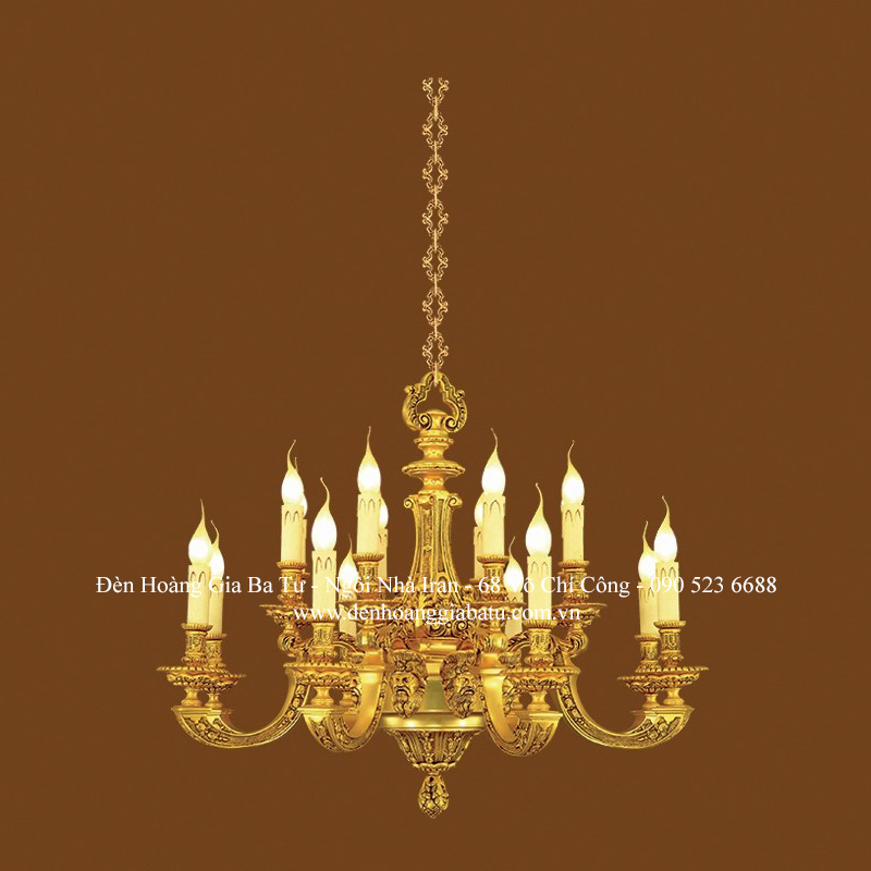 Đèn chùm 3124/8+8 có 16 bóng đèn. Chất liệu: Đồng nguyên khối được mạ vàng Ý ( Pháp).