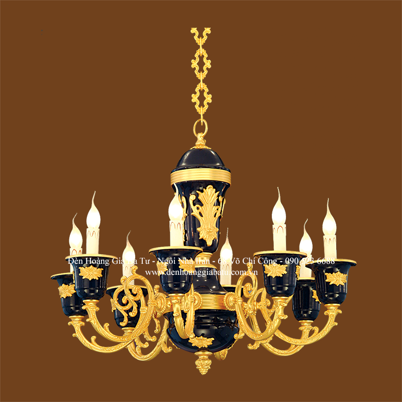 Đèn chùm CH332/8 có 8 bóng đèn. Chất liệu: Đồng nguyên khối mạ vàng Ý (Pháp)