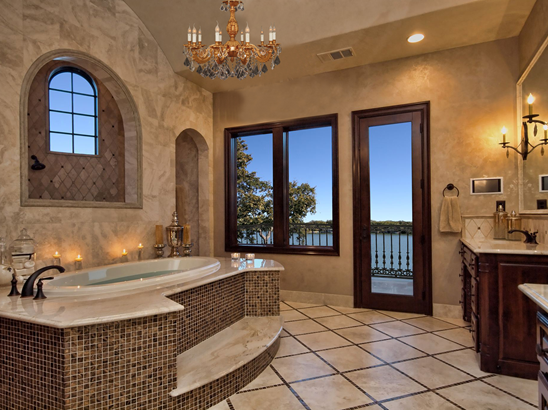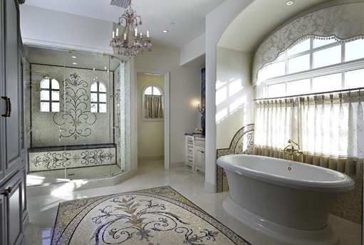 - Không treo đèn chùm ngay phía trên bồn tắm hoặc bể sục mà treo lệch hẳn sang một không gian khác nằm theo hướng chính giữa bồn tắm hoặc bể sục. Điều này giúp cho chủ nhân tránh được việc va chạm với đèn chùm phía trên đầu khi thư giãn trong bồn tắm và quan trọng hơn, nó giúp cho chủ nhân có thể nằm thư giãn trong bể sục ngắm nhìn vẻ đẹp thơ mộng và không gian ánh sáng lãng mạn do đèn chùm tạo ra.