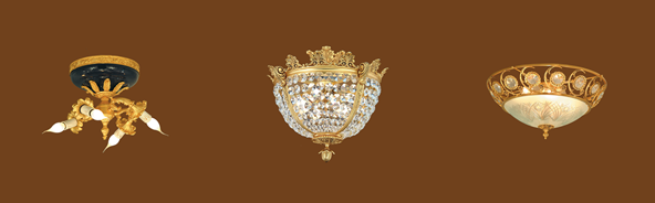 - Đối với những không gian mang phong cách cổ điển, hoàng gia thì những chiếc đèn ốp trần hình nón, hình tròn được cách điệu hoặc có kiểu dáng cầu kỳ và được mạ vàng chính là sự lựa chọn tốt nhất. Trong những không gian sang trọng thì tác dụng chủ yếu của đèn ốp trần là mang mục đích trang trí nên ánh sáng của loại đèn này thường bị hạn chế, chỉ có thể chiếu sáng một vùng nhỏ trong căn phòng nên thường được kết hợp với các loại đèn treo tường, đèn cây hoặc đèn bàn để tạo nên một khối ánh sáng đồng đều nhưng không kém phần lung linh, sang trọng và đẳng cấp.
